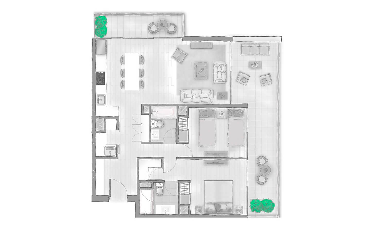 Diseñado para quienes buscan un espacio amplio y versátil, elige entre nuestras dos opciones de cocina para adaptarse a tus preferencias. Este modelo brinda un ambiente acogedor para quienes buscan compartir un momento inolvidable.